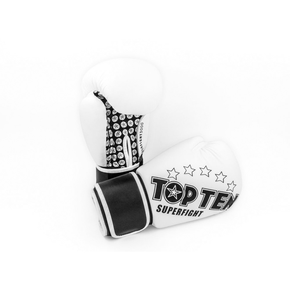 Top Ten je opremil boksarske rokavice “Superfight 3000” z veliko zaščitno cono v predelu gležnja in vložil veliko dela v posebno obliko rokavic. Popolna pokritost in vodenje rok blizu telesa vam zagotavljata učinkovite bloke in dinamične protinapade.