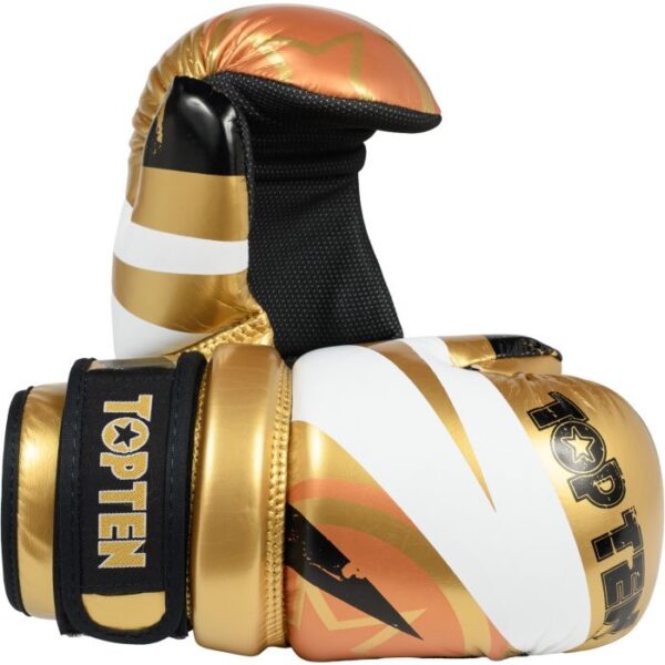 Njihova dodatna lahkotnost se občuti pri uporabi. Brez utrujenih rok – tudi pri dolgih treningih. Z “Urban Arts” rokavicami zdržiš dlje. Oblazinjenje iz močno blažilne PPS pene je anatomsko oblikovano, zato potrebuješ manj energije za idealen udarni položaj. Za tvojo varnost TOP TEN pri “Urban Arts” uporablja preverjeni “Wrist-Control-System” – zaščitni obroč v predelu zapestja.